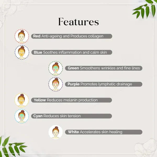 7 Color Light Therapy: Address specific skin concerns with targeted wavelengths: